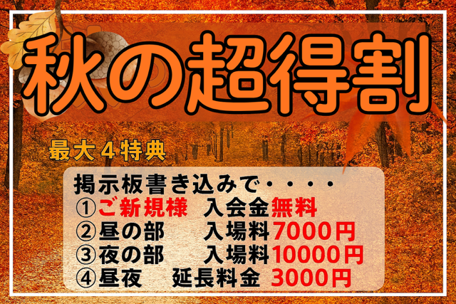 掲示板に書き込みで超お得♪ 昼の部7000円 夜の部10000円 昼から夜の部への延長料3000円...
